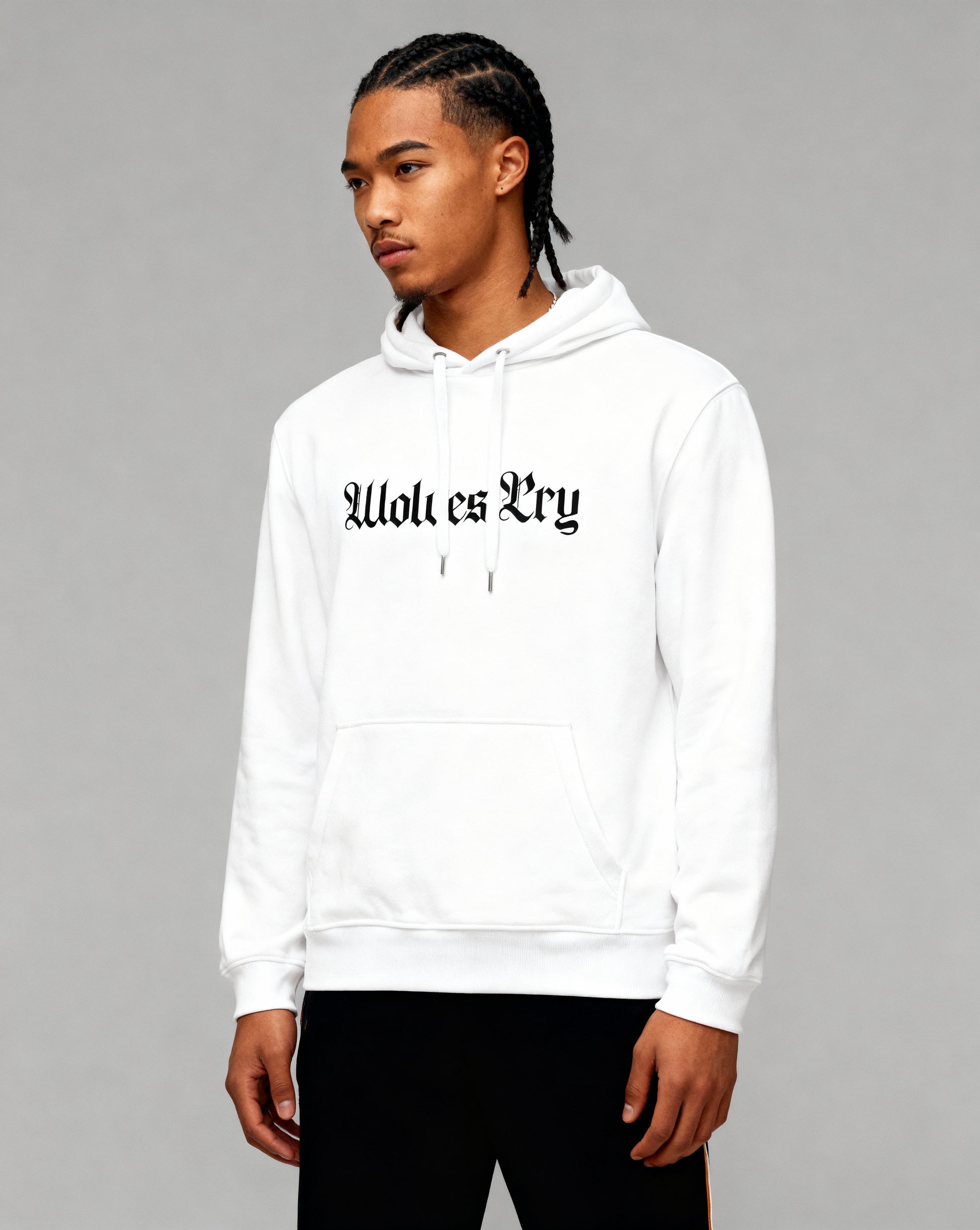 Embrace a clean, sustainable fashion statement with the Wolves Cry White Spell Out Eco Hoodie. Featuring our signature “Wolves Cry” in the iconic OG font, this GOTS-certified hoodie represents a commitment to eco-friendly practices and minimalist style.
